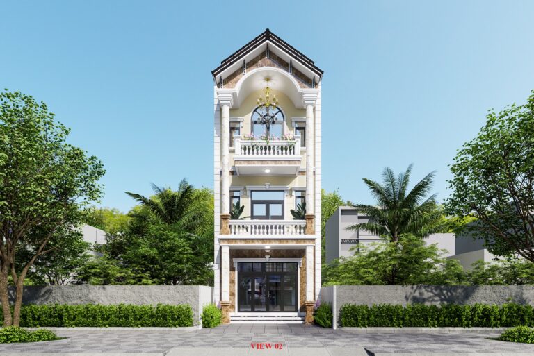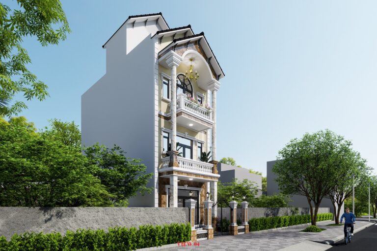 • Quy mô: Nhà phố mái thái 1 trệt 3 lầu